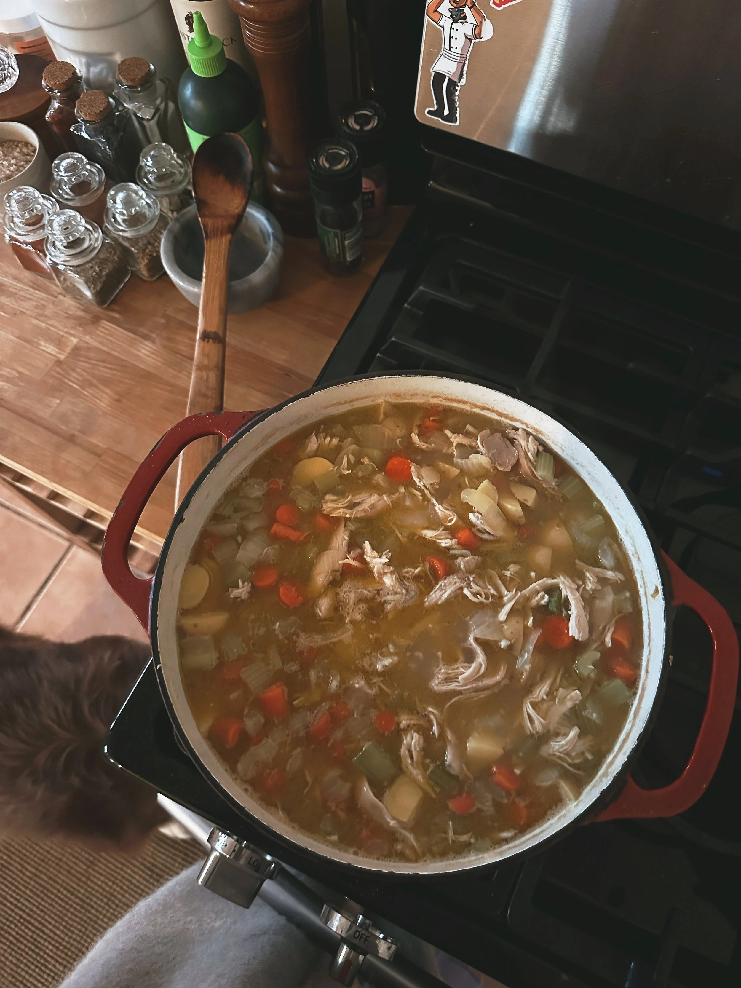 Chicken soup is one of those meals for us. It is Clover’s favorite, the one thing he will almost always eat when nothing else feels right in his body. When he is sick, it becomes both comfort and medicine. Warm. Familiar. Quietly reliable. It nourishes him in a way I can see almost immediately, as if his body recognizes it before his mind does.